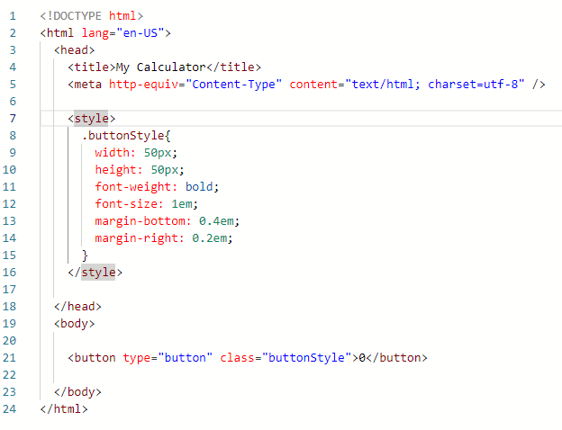 We are going to use it to make the calculator button look nicer. After applying these css styles, the button will be bigger, the font will be bolded, and it will have some space around it to keep it from being too close to the other buttons next to it.