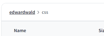 In W3spaces, we are currently working in the css directory and need to move back up to the root level. To do this, click your website name in the breadcrumb navigation at the top of the table.