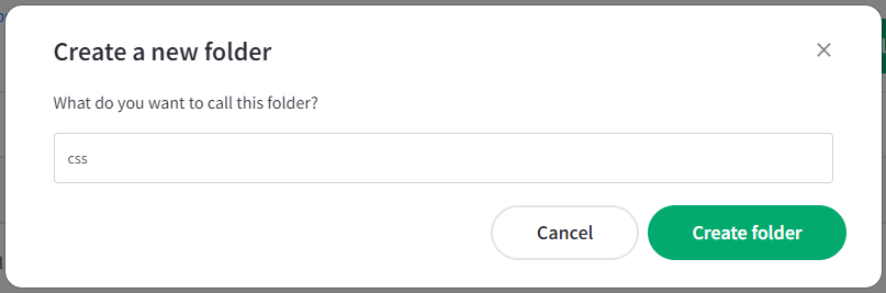Name the folder css all lowercase then click the "Create folder" button.
